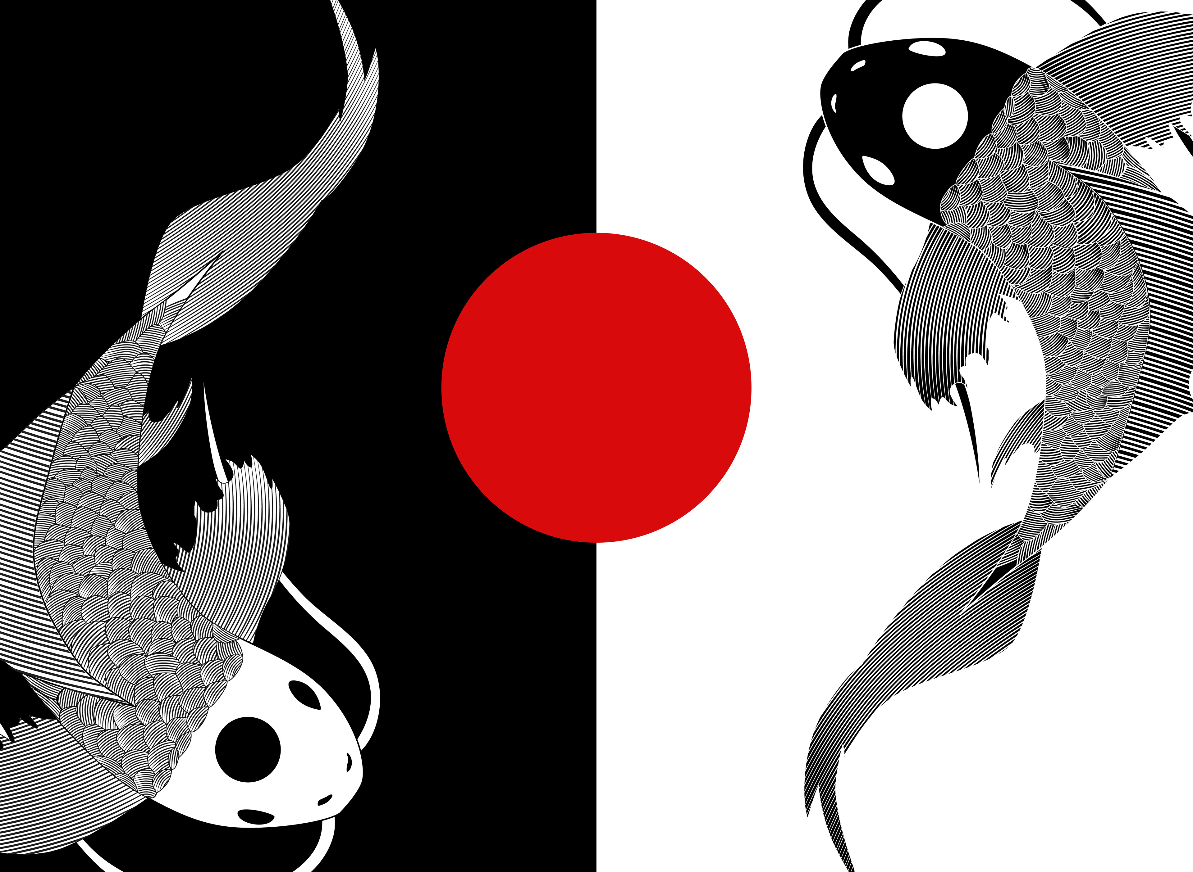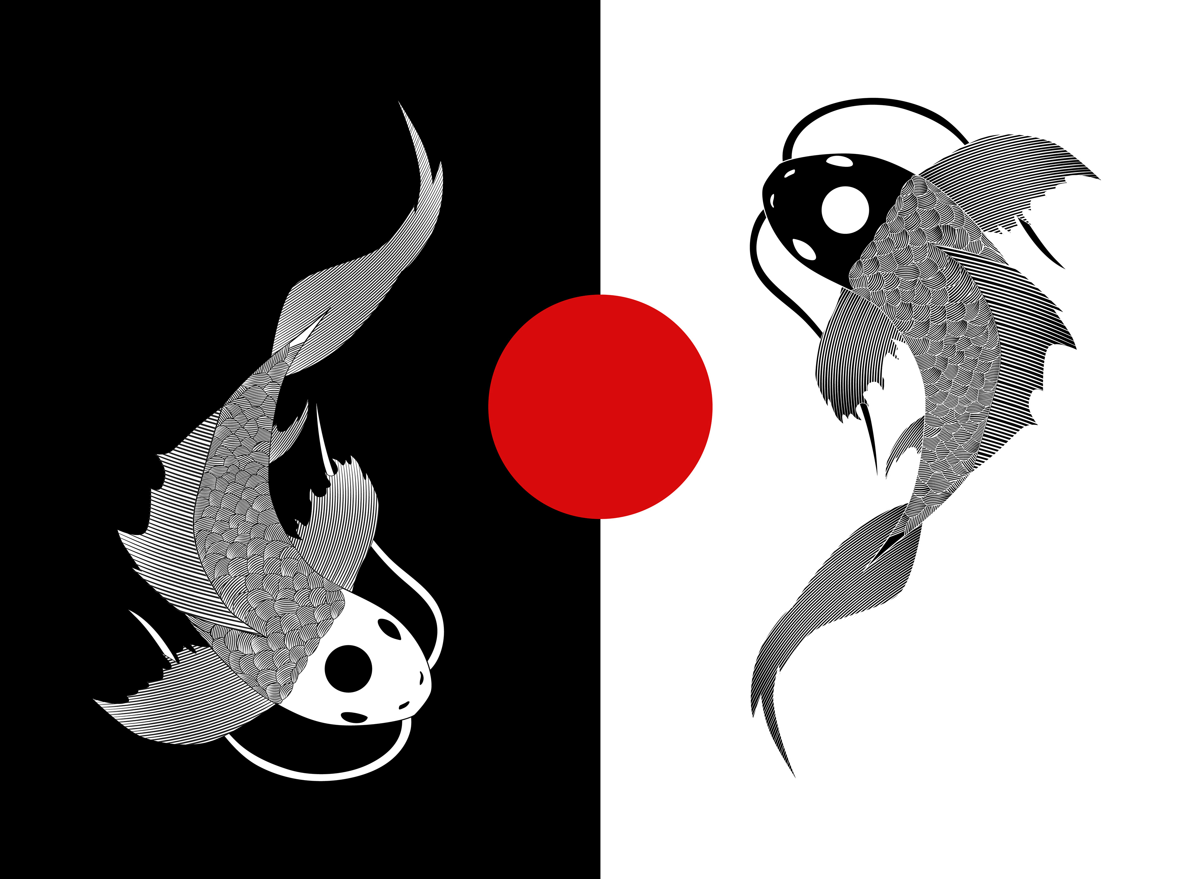 Line art illustration I made of two Koi Fish. I wanted to experiment with black and white and I love artwork that has Koi in it so I figured this would be a perfect project to experiment with.