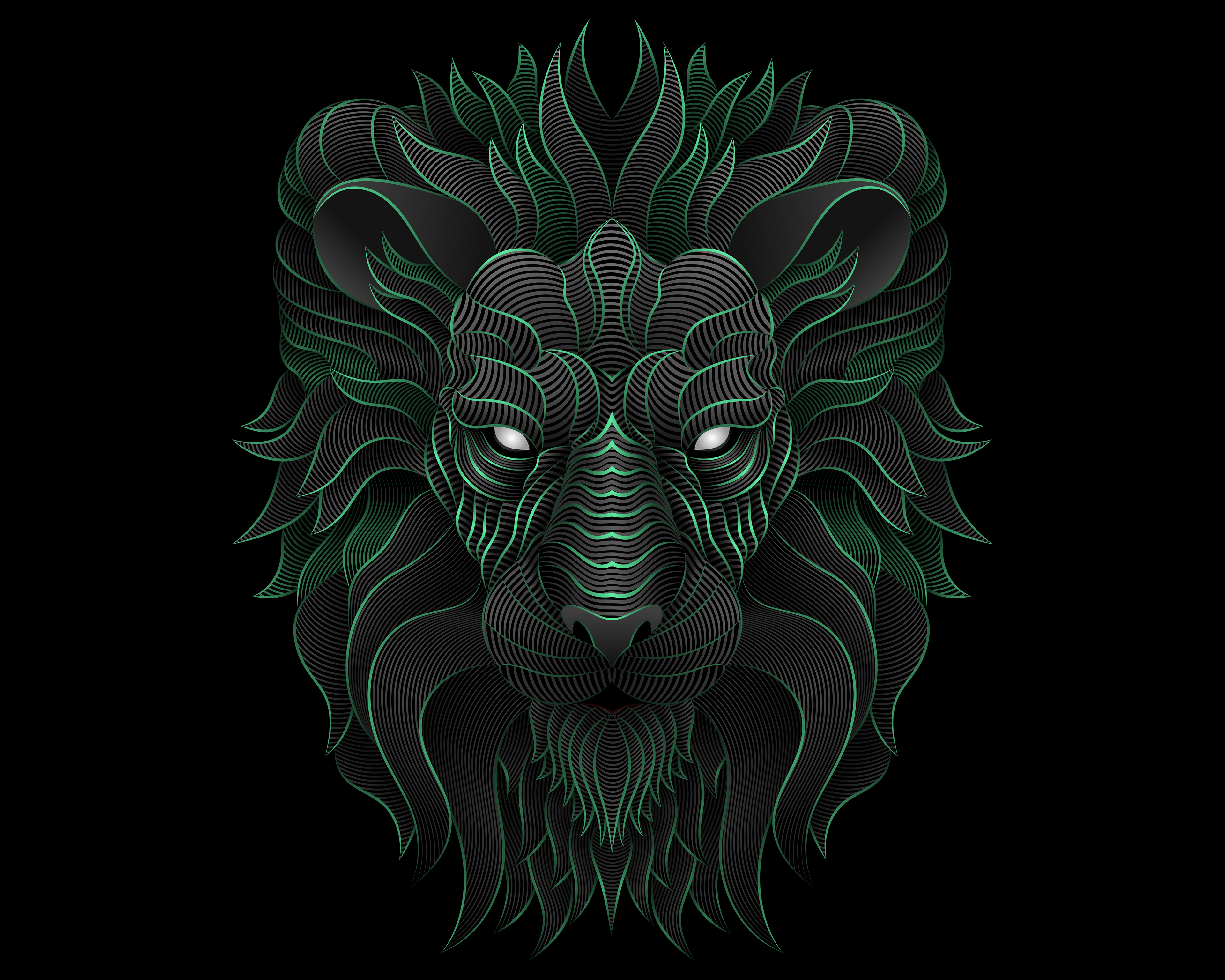 A line art Illustration I designed of a lions face. The mane of the lion was designed to have a crown-like, regal, appearance to it.